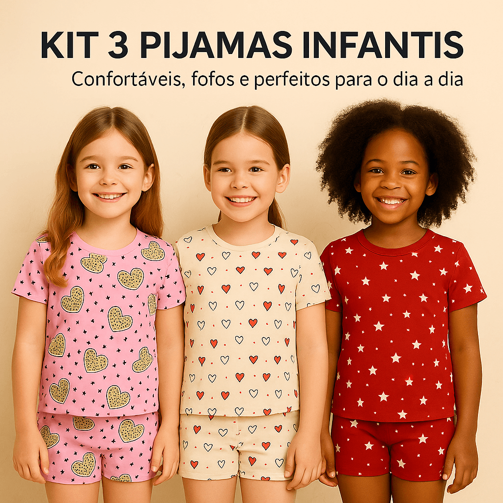 Pijama Infantil Menina Verão Conjunto Camiseta e Short – Leve e Fresquinho – 2 a 12 anos