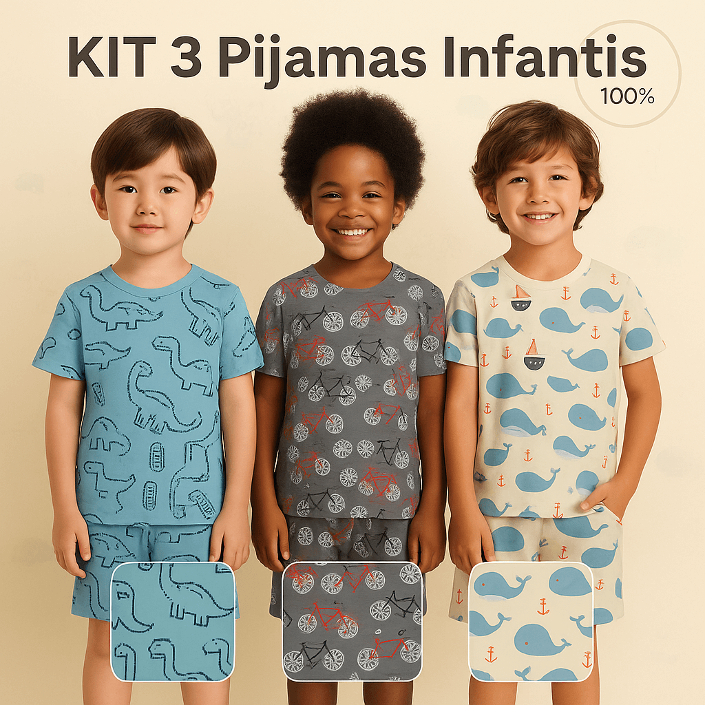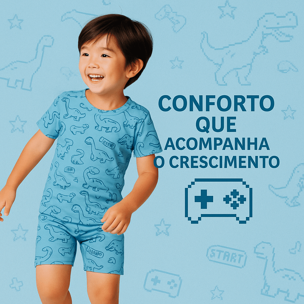 Pijama Infantil Menino Verão Conjunto Camiseta e Short – Leve e Fresquinho – 2 a 12 anos